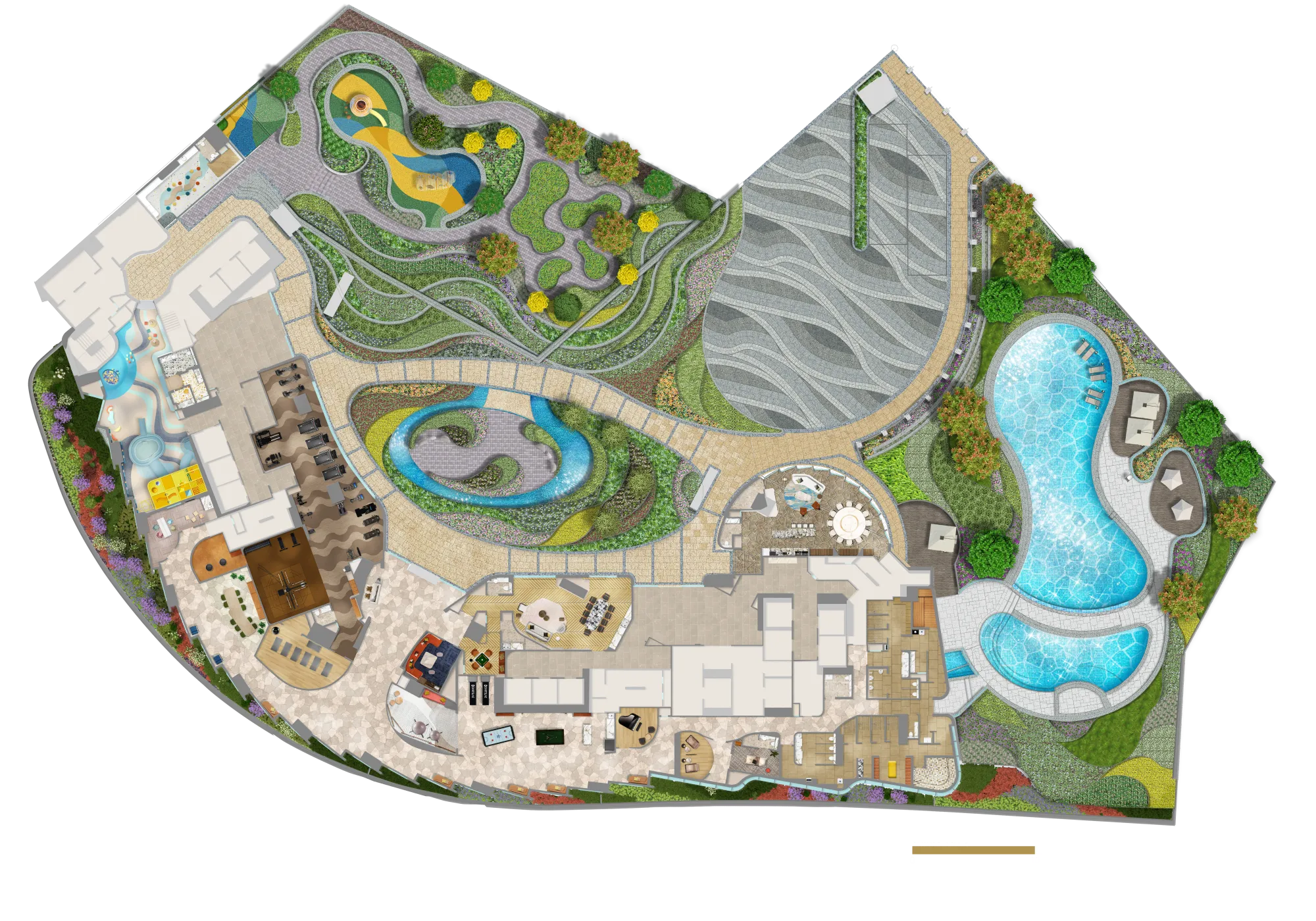 1.會所平面圖僅作顯示期數落成後相關部分大概外觀之用,純屬畫家對期數相關部分之想像,並不反映期數或其任何部分的實際景觀或實際狀況或實際外觀、期數周邊之實際建築物或實際環境,僅供參考。期數仍在興建中,期數周邊環境、建築物及設施會不時改變。會所平面圖按期數的最新經批准的建築圖則擬備,並非按照比例繪畫及經電腦修飾及簡化處理,亦可能未有顯示期數內的其他建築物及/或設施。會所平面圖所示之設計、顏色、布局、用料、裝置、裝修物料、設備、植物、園景、設施、家具、擺設、燈飾、物件等並不一定會在期數落成後或其附近出現。賣方保留權利不時改動期數的建築圖則及其他圖則,期數設計以有關政府部門最後批准之圖則為準。賣方建議準買家參閱售樓說明書,以了解期數的資料。會所平面圖並不構成亦不得詮釋成賣方作出任何不論明示或隱含之要約、陳述、承諾或保證(不論是否有關景觀)。準買家不應依賴會所平面圖作任何用途。 2. 會所各區域及康樂設施的名稱僅作推廣之用,不會用於或出現在建築圖則、買賣合約、發展項目主公契、期數分公契、轉讓契或其他業權或法律文件,可能與會所及康樂設施啟用後的真實名稱不同。賣方保留權利變更、修改和更改會所及康樂設施的間隔、設計、布局、名稱及用途。會所及/或康樂設施的落成日期以屋宇署、地政總署及/或其他相關政府部門之最終批核為準。部分康樂設施及/或服務的開放時間、使用或操作可能受制於相關法律、批地文件、發展項目主公契及期數分公契條款、實際狀況及天氣情況、會所守則及設施的使用守則及政府有關部門發出之同意書或許可証。會所及康樂設施可能需要另行收費方可使用。會所及康樂設施於期數入伙時未必能即時使用。